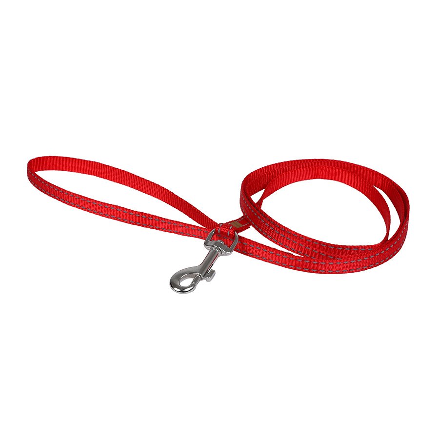 Nylon fabric with high density webbing to add durability. Luminous reflective threading through the full dog leashes enhances super high visibility and would be reflective when lights shine on them at night. Walking in the dark would be safe.