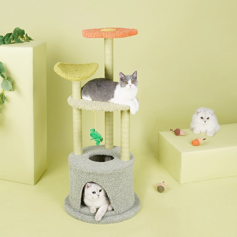 -Flowers, leaves, trees and other elements into the design of the cat climbing frame, creating a natural leisure space for cats.