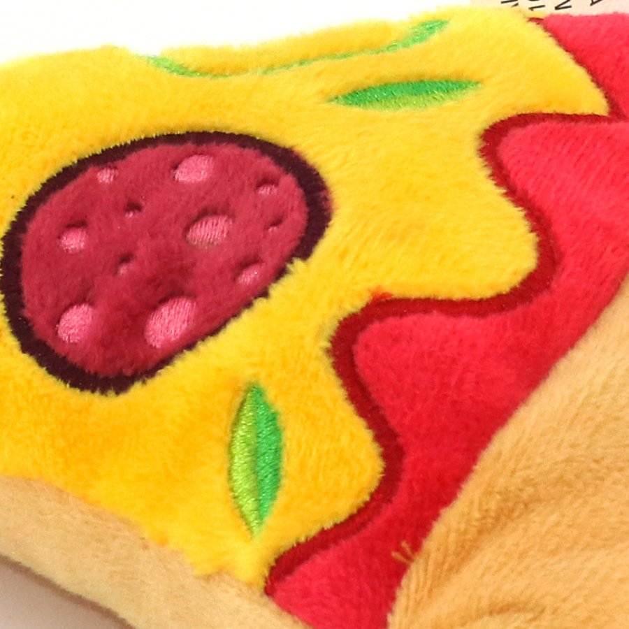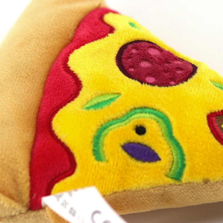 This is a very nice dog toy Squeaky pizza made from Plush. Embroidery makes it look so natural.