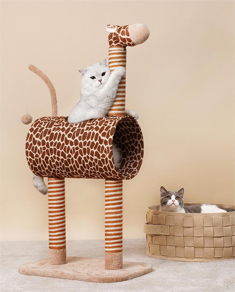 Cute giraffe, with treasure everywhere, will interact and play with cats as if they were their good companions!